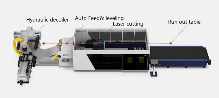 The fully automatic laser blanking line with fiber laser cutters is an efficient blanking production line developed for the sheet metal industry. It is especially suitable for occasions with large batches, high quality, and continuous operations. When the three-in-one feeder is running, the entire feeding device is driven by the motor and roller through the servo control system, resulting in higher transmission accuracy and more stable feeding. The laser uses an advanced special laser generator, equipped with a customized cutting head and a high-speed servo drive control system. The cutting speed is 20% higher than other products with the same power, improving production efficiency. Innovative optimized design realizes high-power and low-energy consumption production mode, saving 15% of energy consumption compared with similar products, and achieving better cost savings.