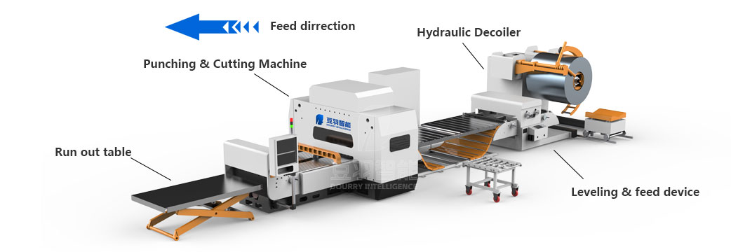 Fully Automatic Sheet Metal Flexible Punching And Shearing Production Line is the latest integrated, automated and intelligent equipment for metal plate production and processing developed by Dourry Intelligence Equipment. It can achieve 20m/min, 300 times/min. From the perspective of the development of the entire sheet metal processing industry, intelligence, automation, and flexibility represent the trend and development direction of sheet metal processing technology, and have great influence in the fields of intelligent equipment and industry 4.0. important application prospects. This punching and shearing production line has a high degree of automation and a wide processing range, which can meet the needs of different customer groups. It is widely used in sheet metal parts processing, such as batch processing of steel furniture, steel cabinets, electrical cabinets and other sheet metal parts.